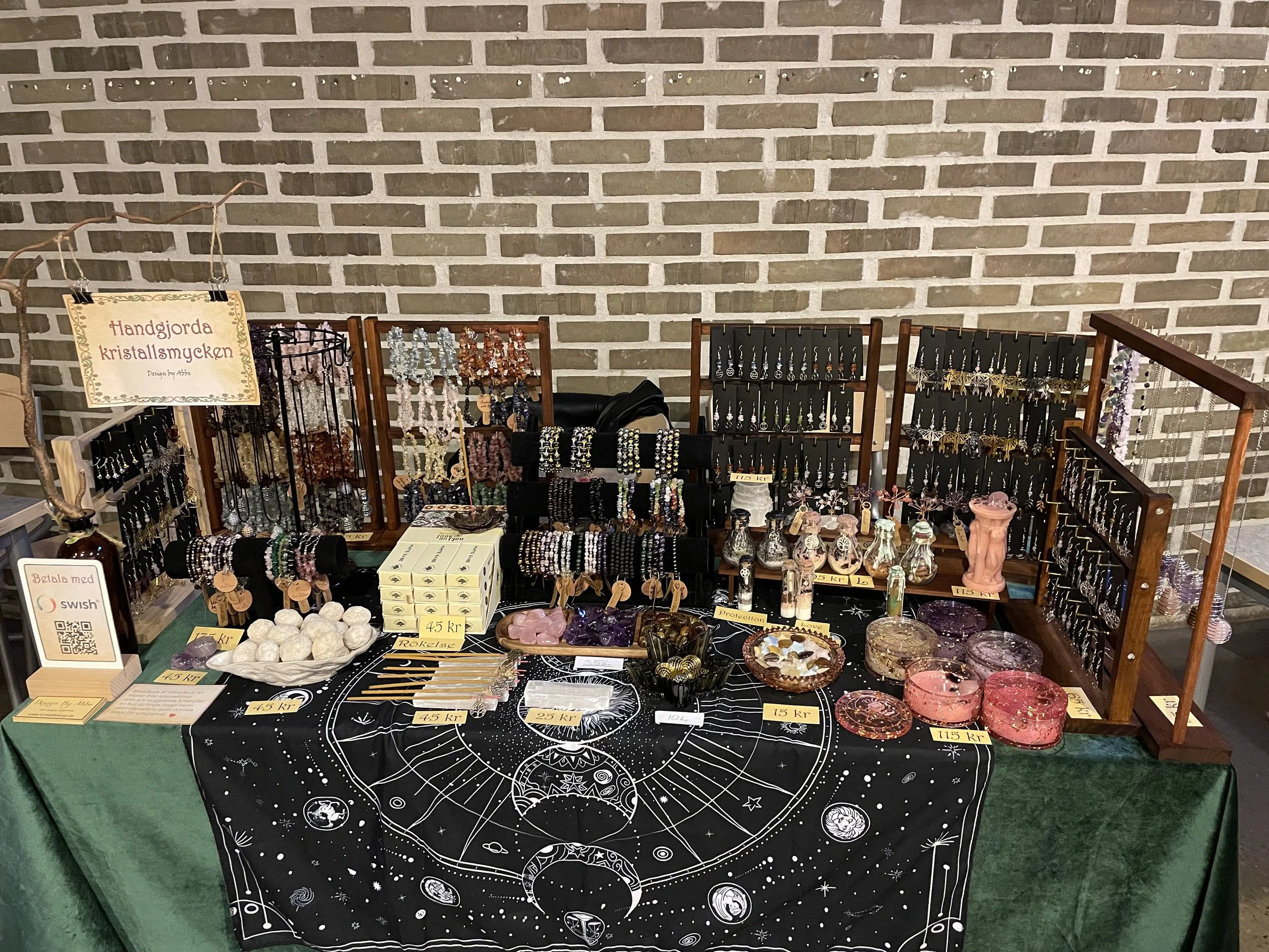 At our table you will find a great mix of things. Things inspired by games, shows and books. An overall spacey and creepy theme on our pieces.
